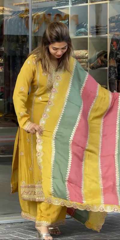 | Fabric | Top : Heavy Faux Georgette With Heavy Embroidery Sequence Work With Full Sleeve Inner : Santoon Top Length:43-44 Inch Size : Free Size Plazoo :- Heavy Faux Georgette With Embroidery Sequence Work Plazzo Inner : Micro Cotton Plazzo Length:40-41 Inc Type : Full Stitched Dupatta :Heavy Multi Color Faux Georgette With Embroidery With Four Side Embroidery Lace Border With Cutwork Dupatta Length: 2.20 Mtr |