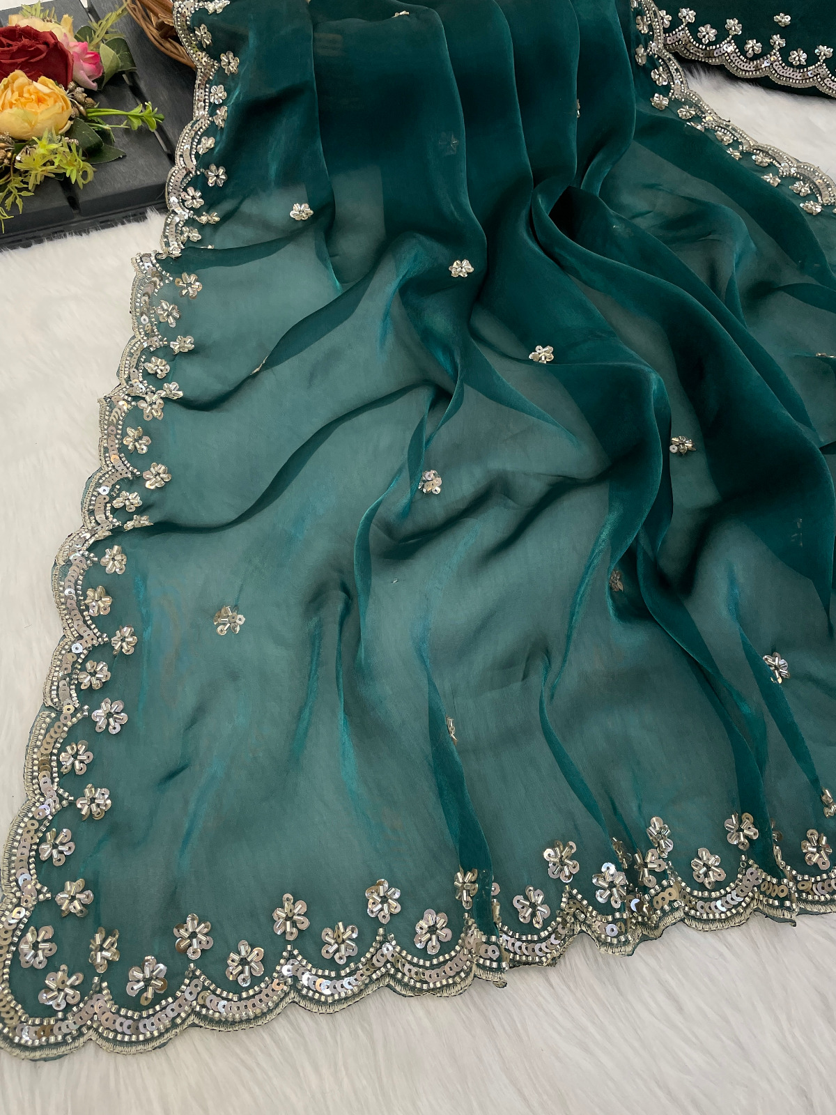 Firozi Jimmy Chou Silk Embroidery Work Saree