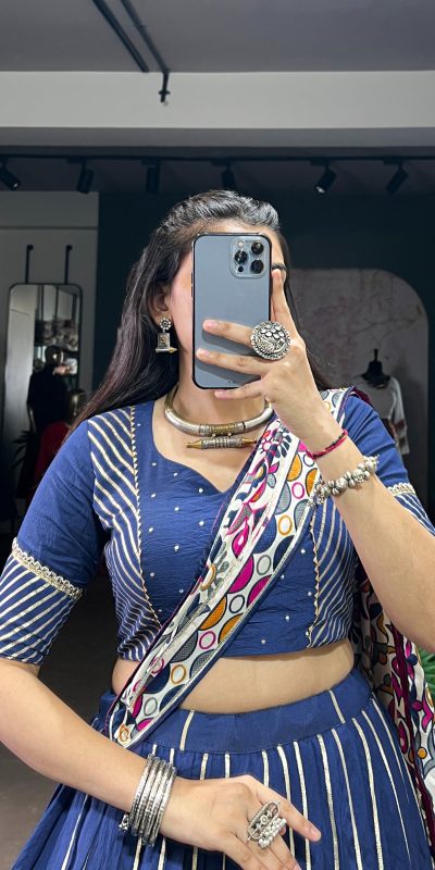 Firozi Pure Chanderi Zari Work Gotta Patti Lehenga Choli