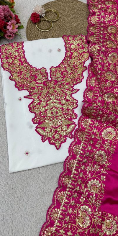 Glamorous White & Pink Color Silk Thread Sequence Salwar Suit
