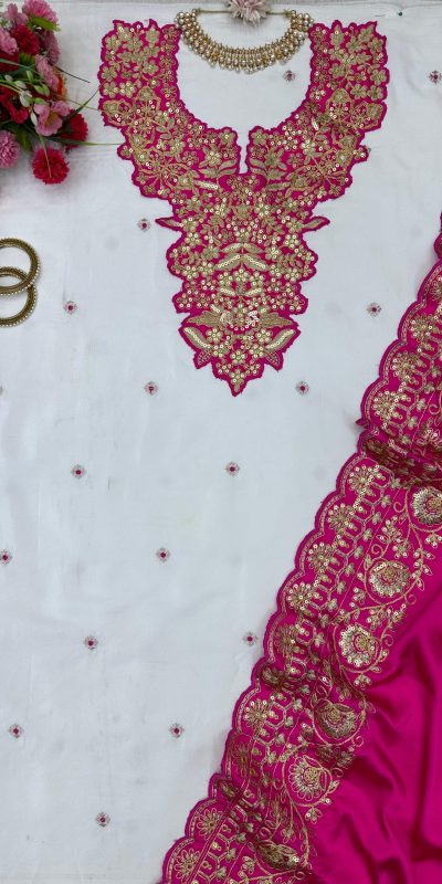 KD 1447 White & Pink Color Silk Thread Sequence Salwar Suit Casual, Party, Wedding, Festive, Events Etc. Expected Delivery 4-6 Working Days @1849/-
