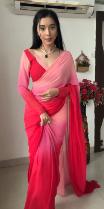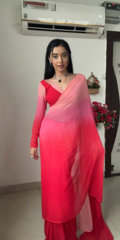Glowing Pink And Red Color Soft Georgette Silk Ready To Wear Saree