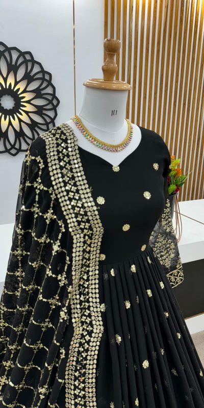 Graceful Black Color Georgette Embroidery Sequence Work Gown