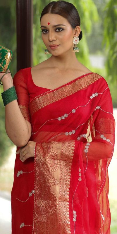 MS Kora Red Color Organza Sequins Lehriya Embroidery Saree Casual, Party Wear, Wedding, Events, Etc. Expected Delivery 4-6 Working Days 1599/-