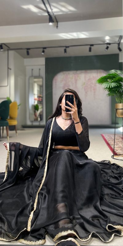 Grand Black Color Rangoli Silk Plain Lace Border Lehenga Choli