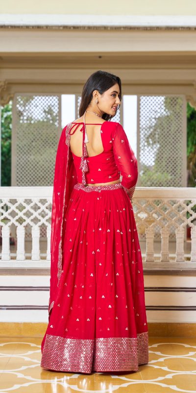 Grand Red Color Georgette Embroidery Sequence Lehenga Choli