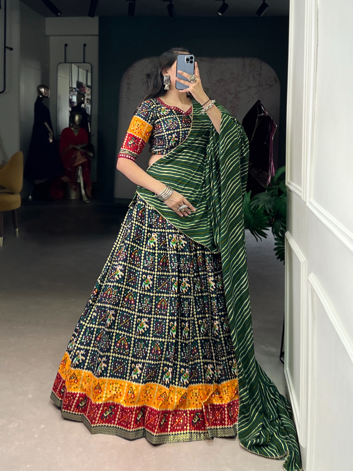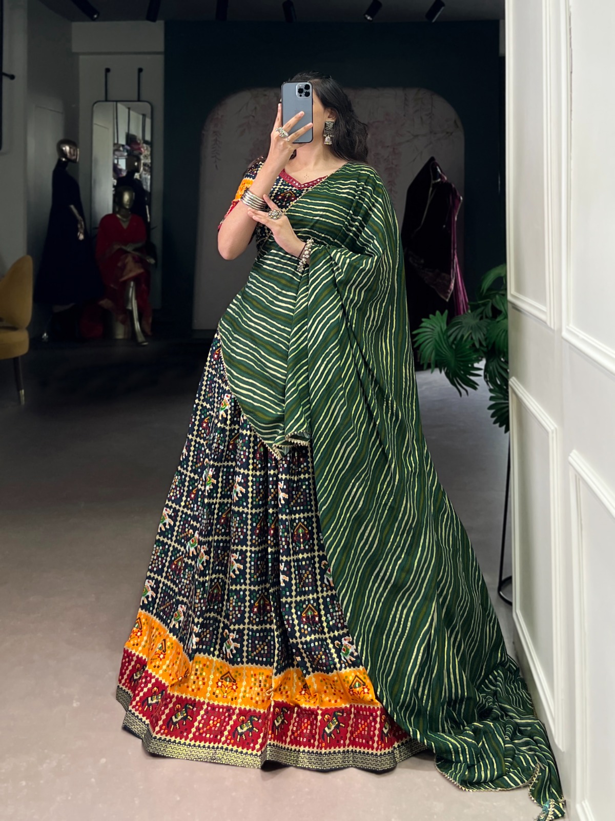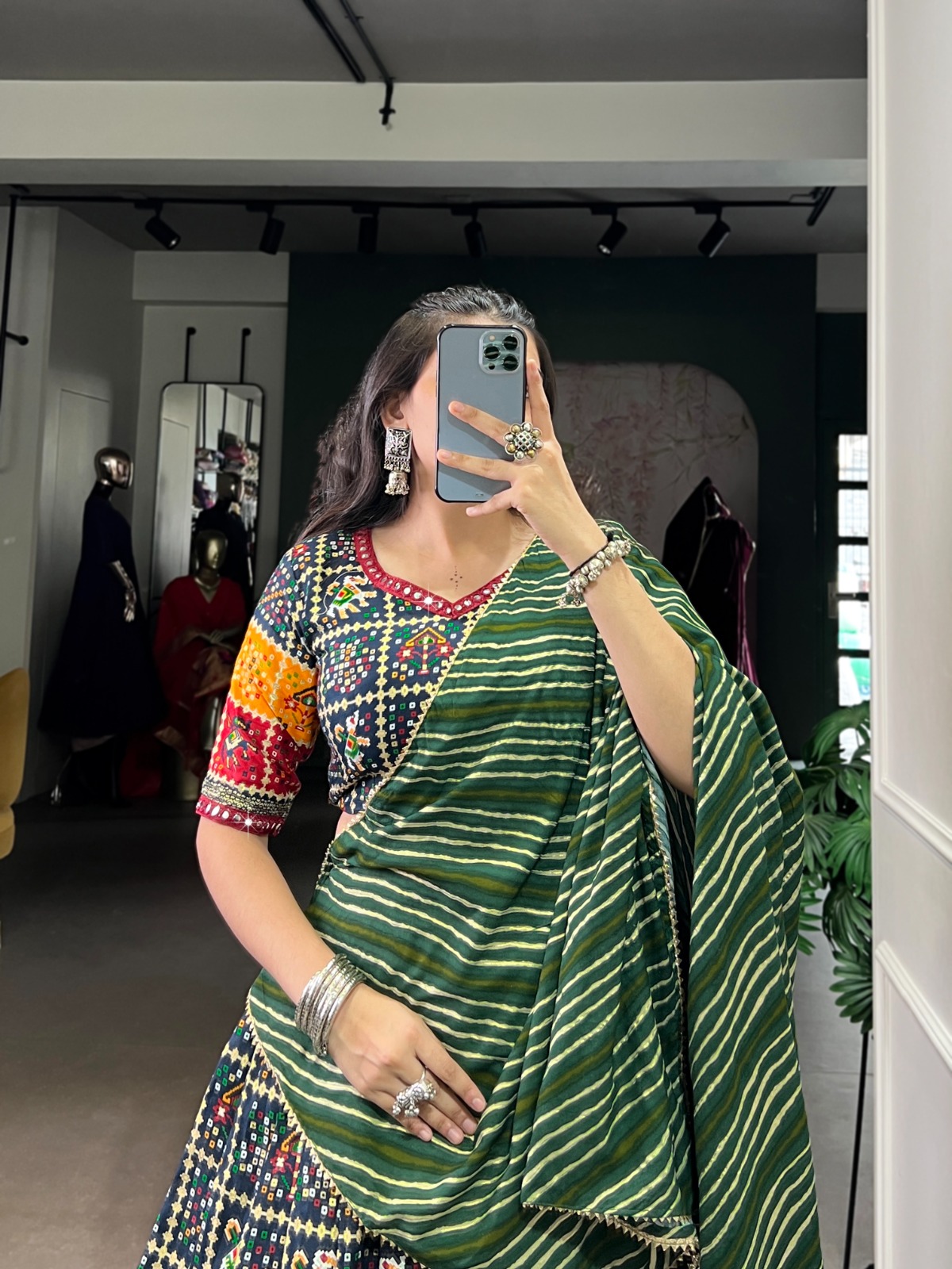 Dupatta work : Foil Printed With Paper Mirror And Gota Patti Lace Border Also Come With Tassels