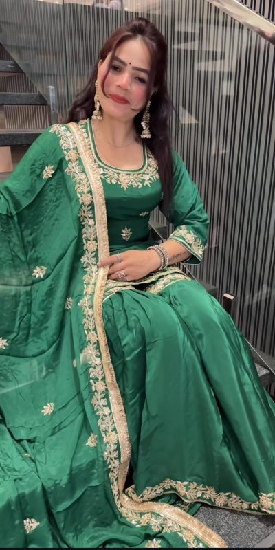 Sharara Palazzo : Natural Crep With 5mm Sequence Embroidery Work.