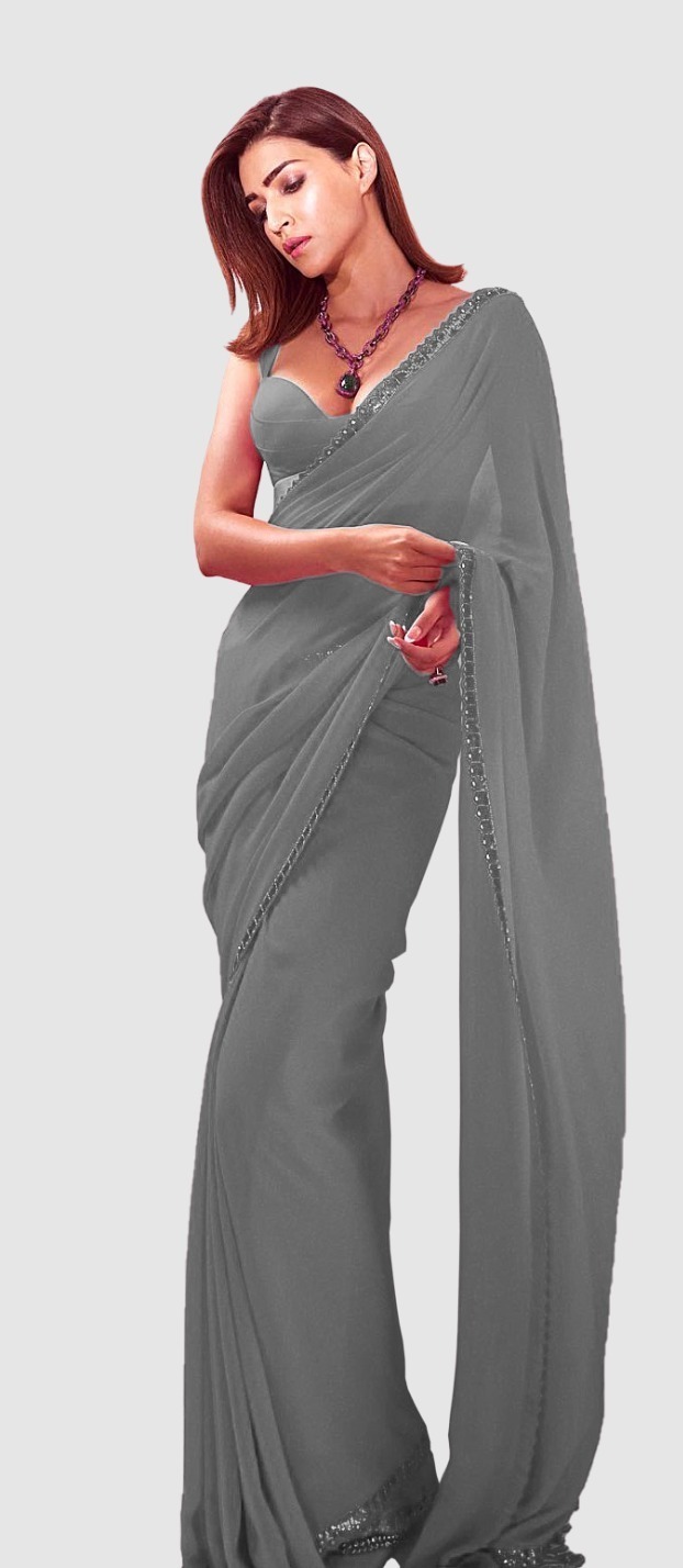 Grey Georgette Embroidery Dual Sequence Saree