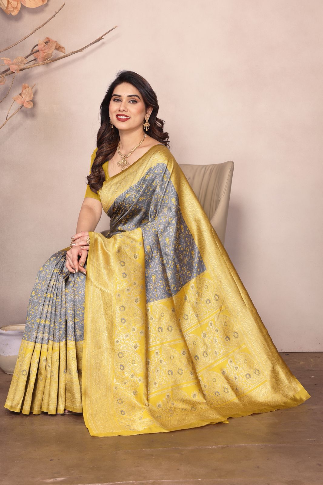 Grey Lichi Silk Jacquard Rich Pallu Saree