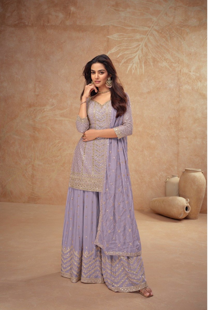 Lavender Chinon Sequence Work Salwar Suit