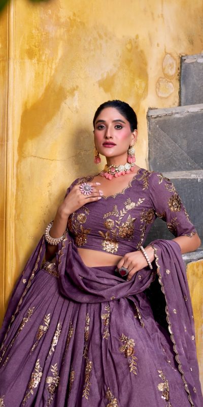 Lavender Chocolate Crush Embroidery Work Lehenga Choli