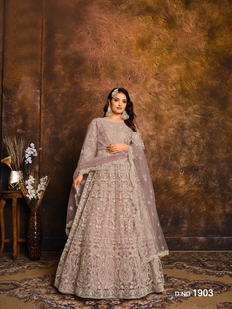 Lavender Net Embroidery Work Salwar Suit