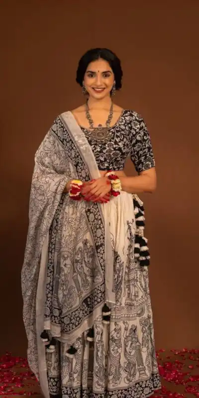 Choli Fabric:- cotton Work:- kalamkari print Inner:- Micro Cotton Cups:- Yes Size:- Free Size Semi Stitched (Fully Stitched)Lehenga Fabric:- cotton Work:- Kalamkari Print Inner:- Micro Cotton Flair:- 3 Meter Dupatta Size:- 2.30 Meter