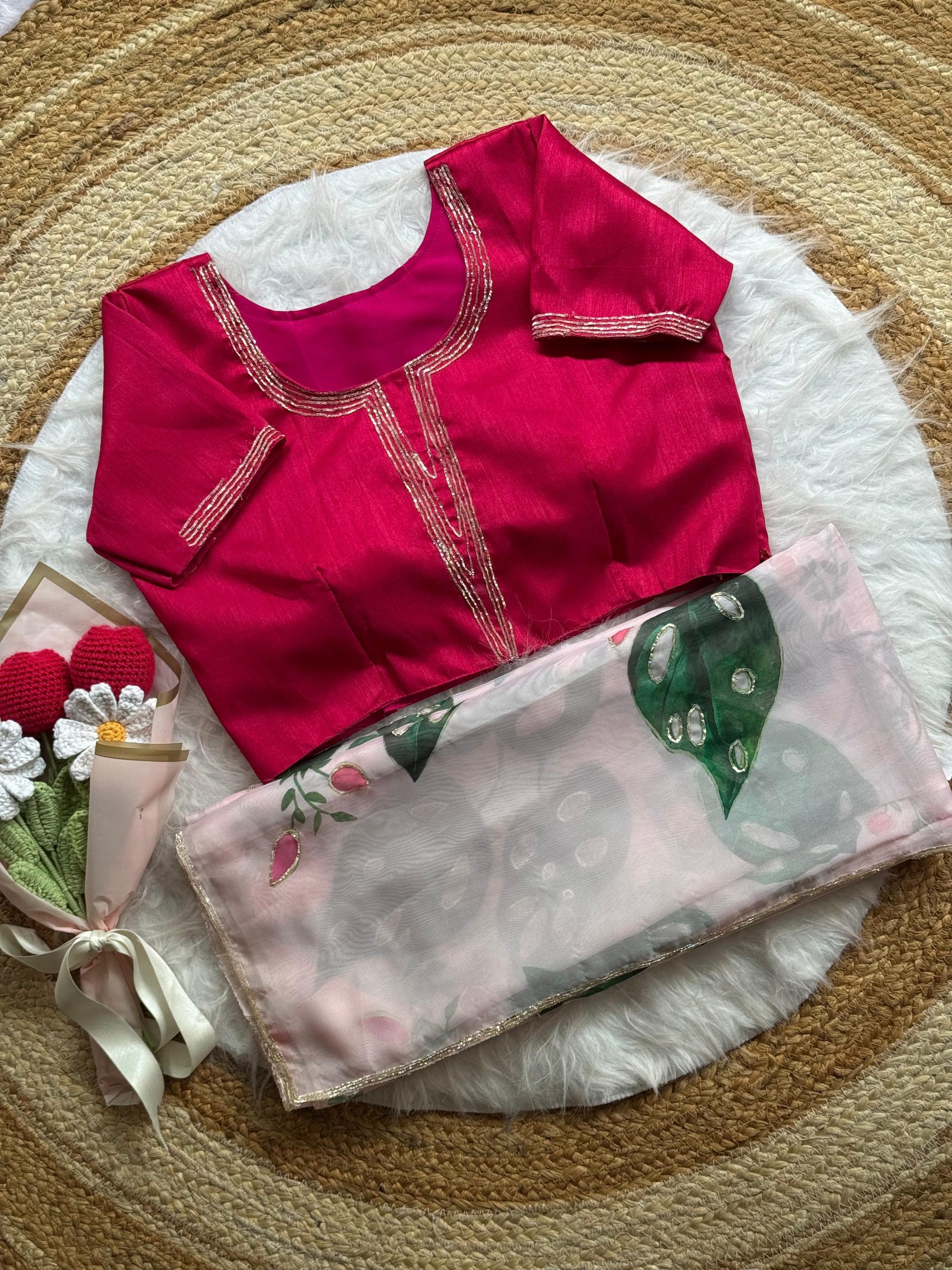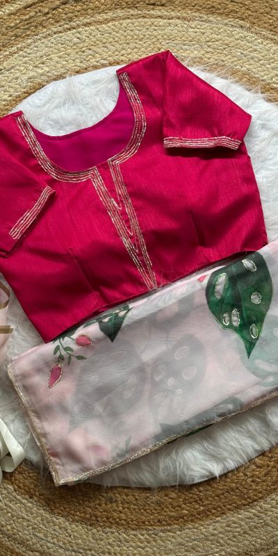 Saree Fabric : Soft Organza (TABBY SILK) Saree With Flower Print All Over Saree Having Hand Zardosi Pitha Work