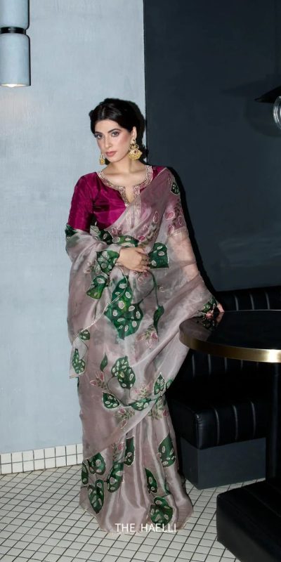 Soft Organza (TABBY SILK) Saree With Flower Print All Over Saree Having Hand Zardosi Pitha Work