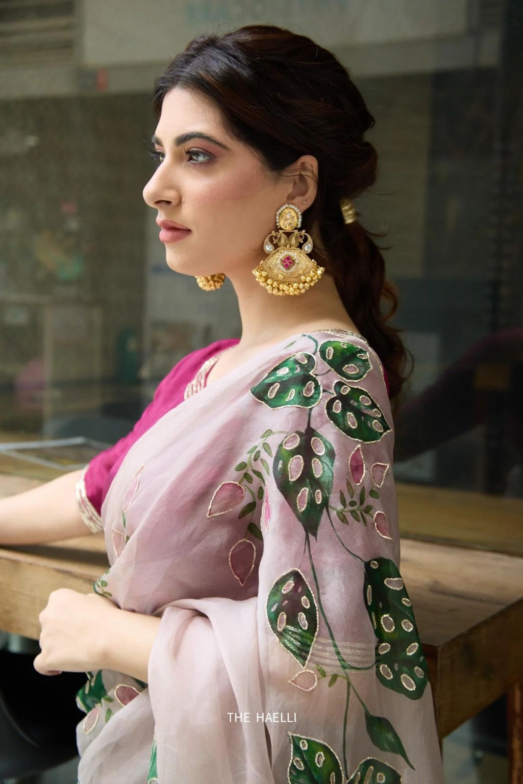 Light Pink Soft Organza Zardosi Pitha Work Saree