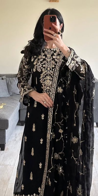 Lovely Black Color Georgette thread with Sequence Salwar Suit