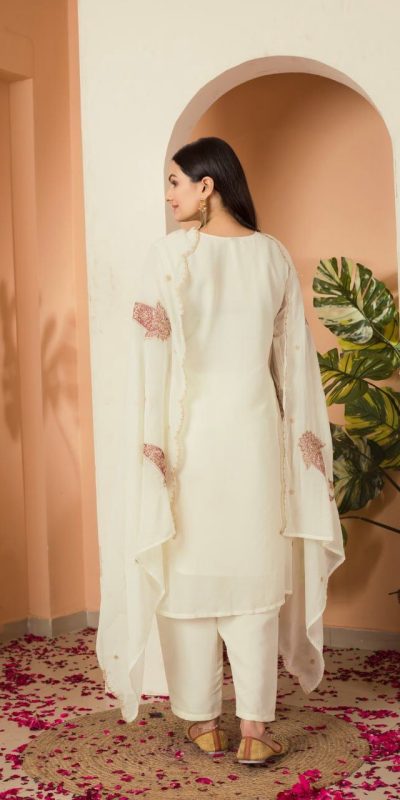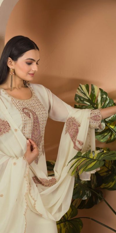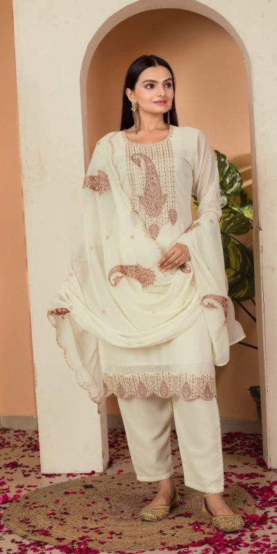 lovey Cream Color Fox georgette Embroidery Thread Sequence Salwar Suit