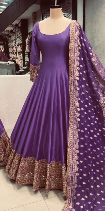 “The salwar suit’s anarkali silhouette is gracefully designed. It adds a sense of drama and elegance to the overall ensemble.”