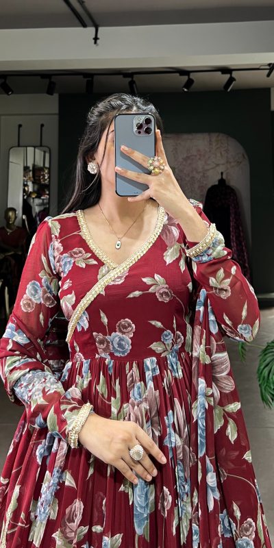 YNF 5103 Maroon Color Marble Floral Print Lace Touch Up Gown Casual, Wedding, Party, Festive, Events Etc. Expected Delivery 4-6 Working Days @1799/-