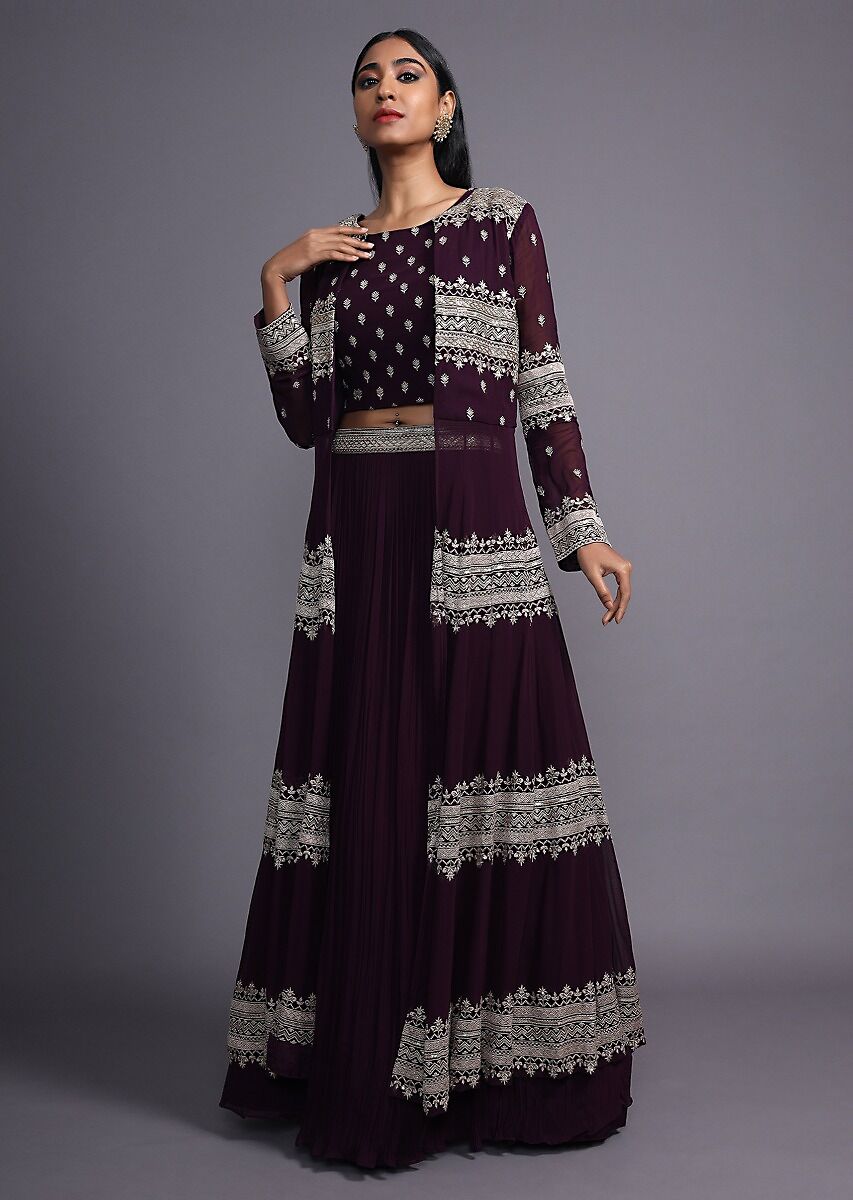 Magnificent Purple Color Heavy Georgette Lehenga Choli With Jacket