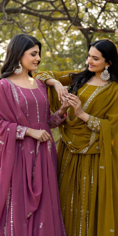 Fabrics | Gown Fabric:- Fox Georgette Work:- Heavy 7 mm sequence Embroidery Work Inner:- Micro Cotton Flair:-3.50 mtr Size:- Free Size Semi Stitched(Fully Stitched) Dupatta Fabric:- Fox Georgette Work:- Heavy 7 mm sequence Embroidery Work Size:- 2.30 Meter |