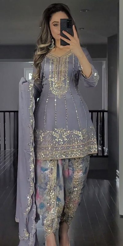 Dhoti Salwar : Faux Georgette With Digital Print And Embroidery 5mm Sequence Work
