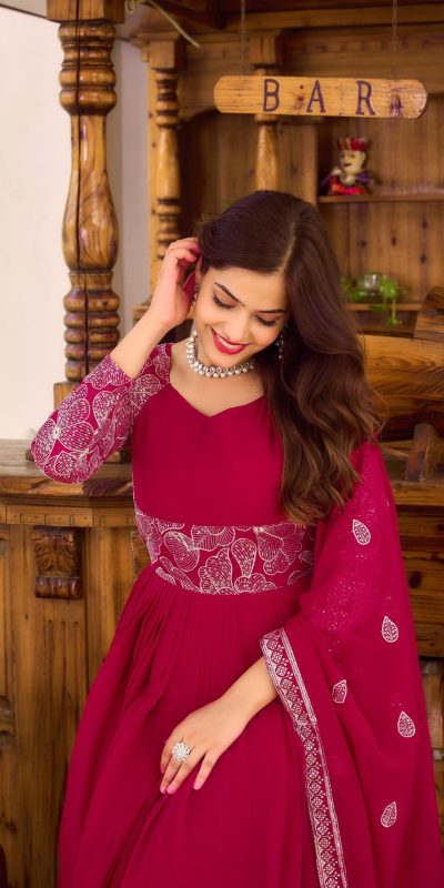 Ram 018 Maroon Color Fox Georgette Embroidery Sequence Gown Casual, Wedding, Party, Festive, Events Etc. Expected Delivery 4-6 Working Days @1999/-