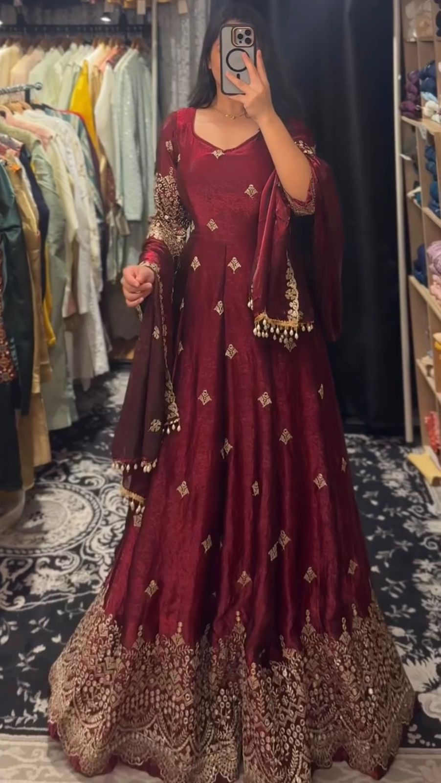 Maroon Fendy Silk Sequence Lace Work Gown