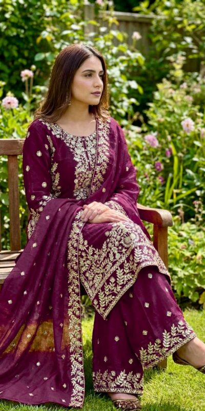 Maroon Organza Silk With Sequence Work Salwar Suit