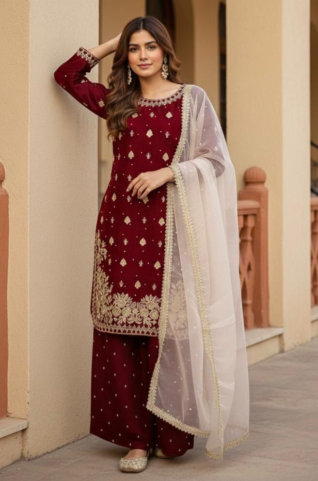 Maroon Zimmy Silk Embroider Work Salwar Suit