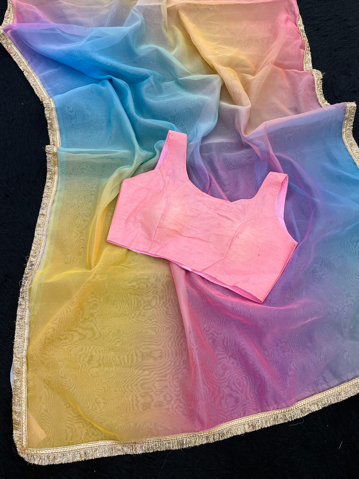 Saree Work : Heavy Organza Digital Print With Lace Border in Saree Work