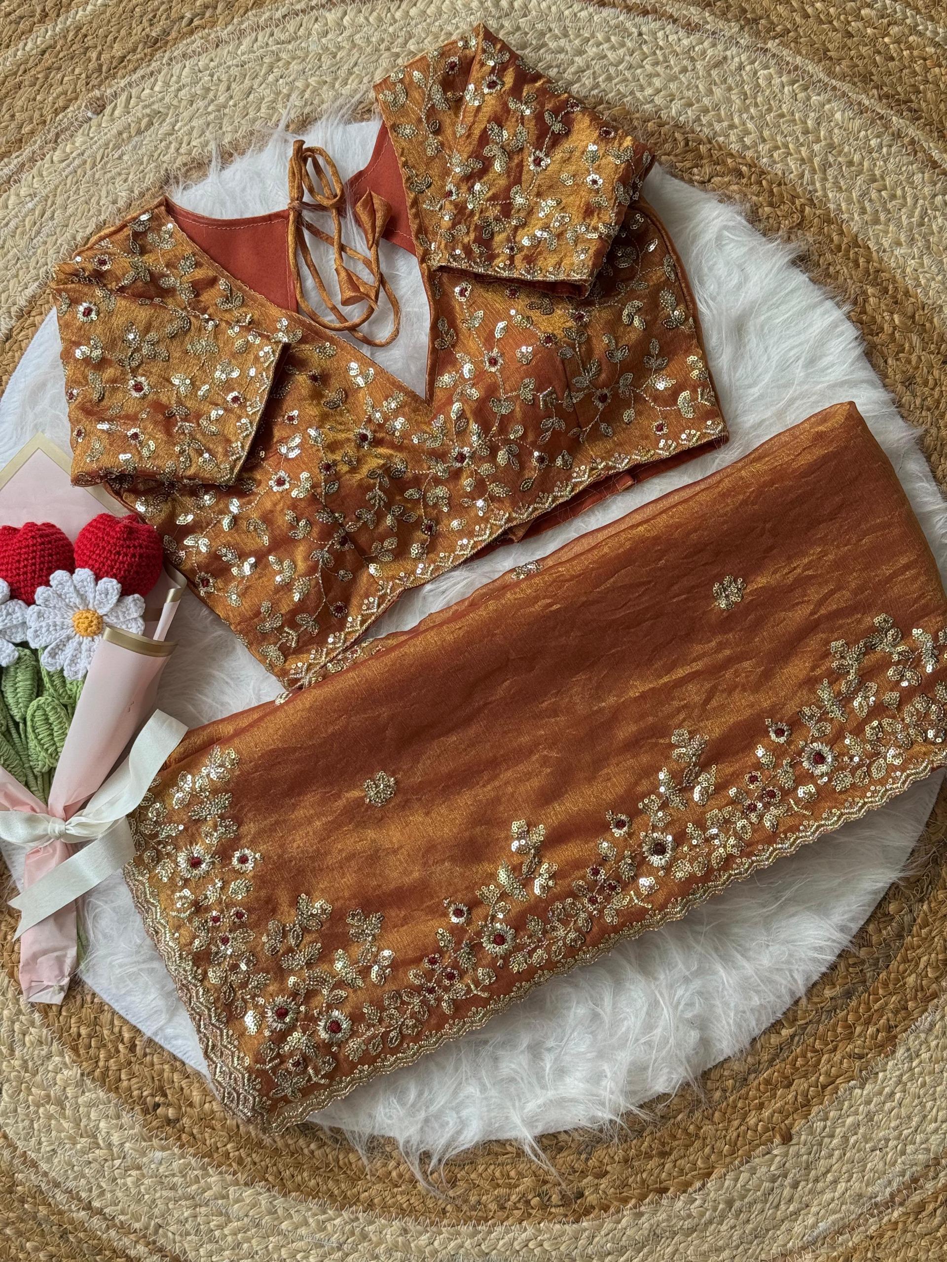 Blouse : Soft Fendy Chiffon With Heavy Embroidery Sequins And Thread Work