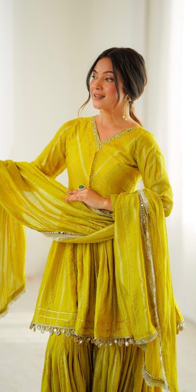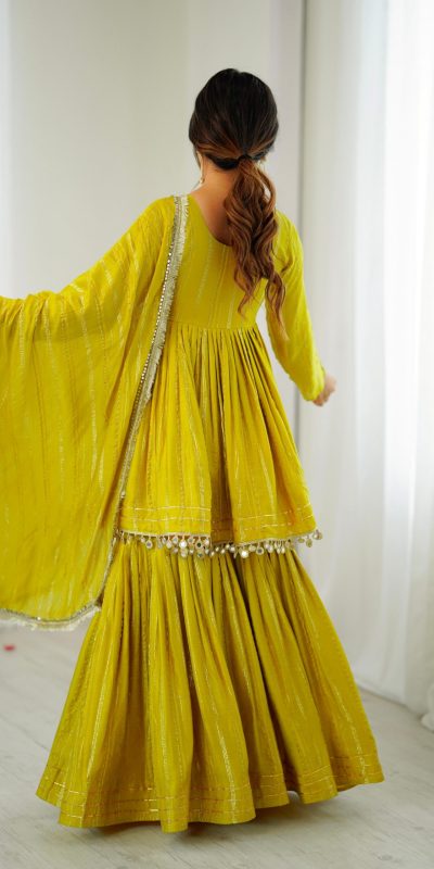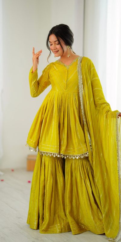 Mustard Mal Chanderi Mirror Work Salwar Suit