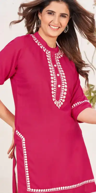 Top :- Heavy Pure Cameric Cotton Embroidery And Lace Work