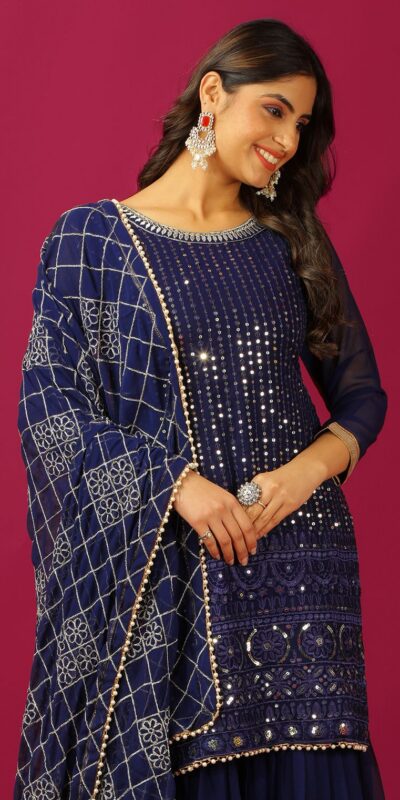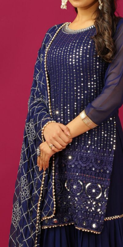 Navy Blue Georgette Embroidery Work Salwar Suit