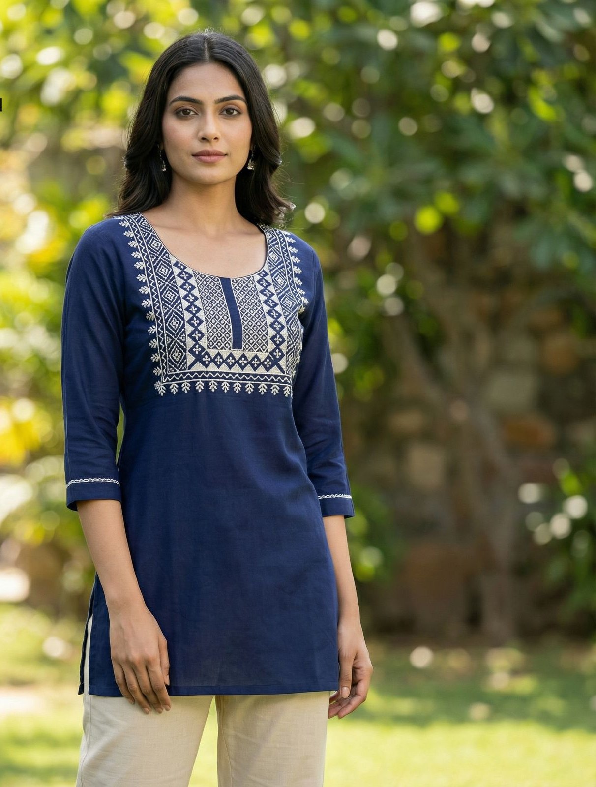 Navy Blue Rayon Thread Work Kurti