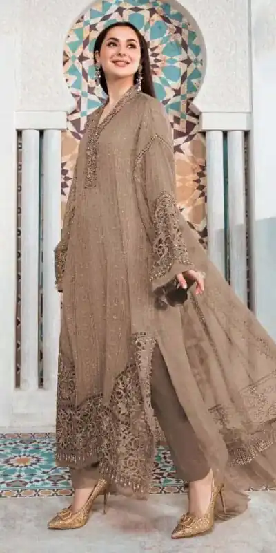 FC 1091 Brown Gown : Heavy Faux Georgette Work : Embroidery Work Casual, Wedding, Festive, Events Brown Color Gown @2049/-y