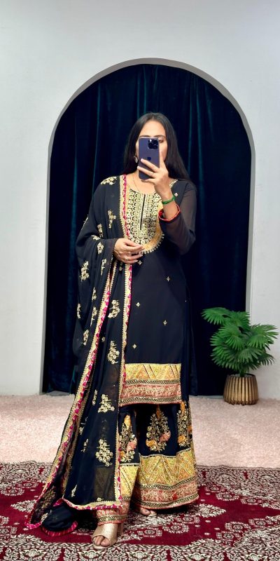 ST 1050 Black Color Georgette Embroidery Stone & Mirror Salwar Suit Casual, Wedding, Party, Festive, Events Etc. Expected Delivery 4-6 Working Days @2199/-