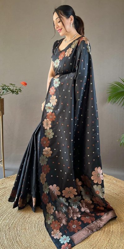 DDF 127 Black Color Soft Lichi Silk Ordinary Design Rich Pallu Saree Casual, Party Wear, Events, Festivals Etc. Expected Delivery 4-6 Working Days 1499/-