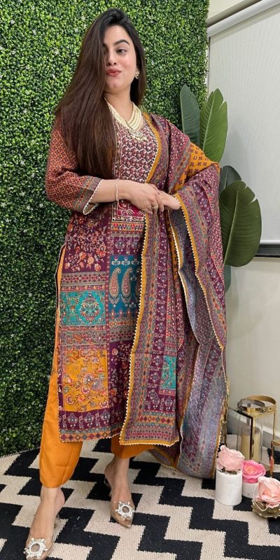 LG 1859 Mustard color Maslin Printed Real Mirror Work Salwar Suit Casual, Wedding, Party, Festive, Events . Expected Delivery  4-6 Working Days @1899/-