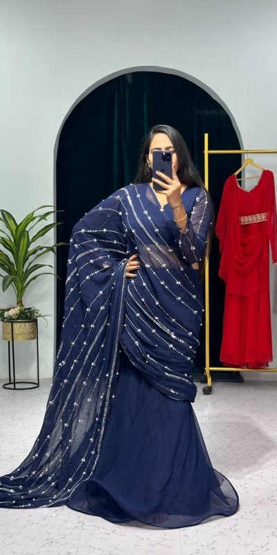 ST 1035 Navy Blue Color Georgette Embroidery Moti Work Lehenga Saree Casual, Wedding, Party, Festive, Events Etc. Expected Delivery 4-6 Working Days @2049/-