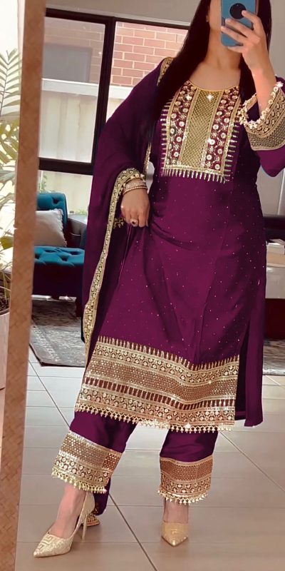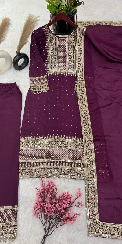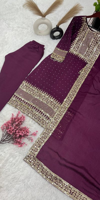 ZF 371 Purple Color Chinnon Silk Embroidery Salwar Suit Casual, Wedding, Party, Events Etc. Expected Delivery 4-6 Working Days 2099/-