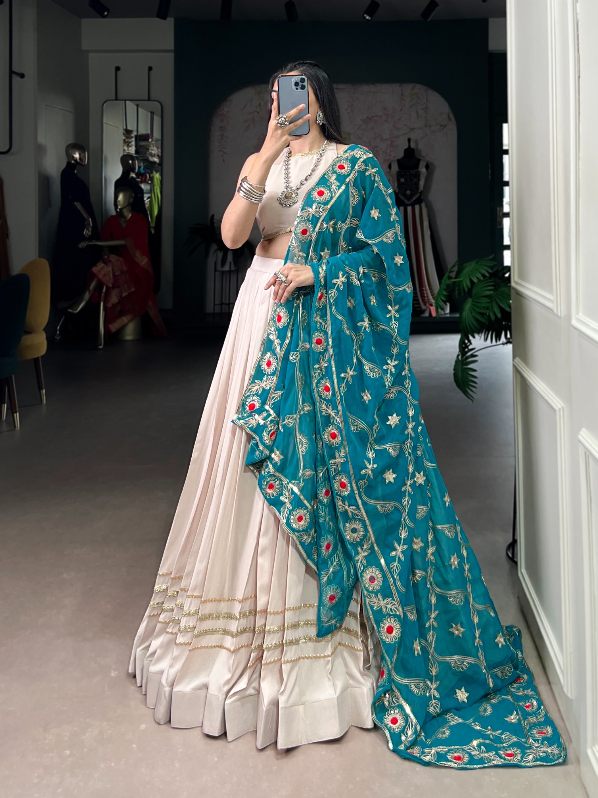 Off White Rayon Embroidery Sequins Lehenga Choli