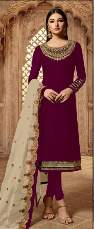 Top :- Heavy satin Georgette with Embroidery .Work Sleeves :- Heavy satin Georgette With Embroidery Work Stone Inner :- Santoon Lehenga :- Heavy Net SantoonBottom:- Heavy SantoonDupatta :-Net Georgette With Embroidery.Work Length :- Max up to 48 Size :- Free Size Semi Stitched |