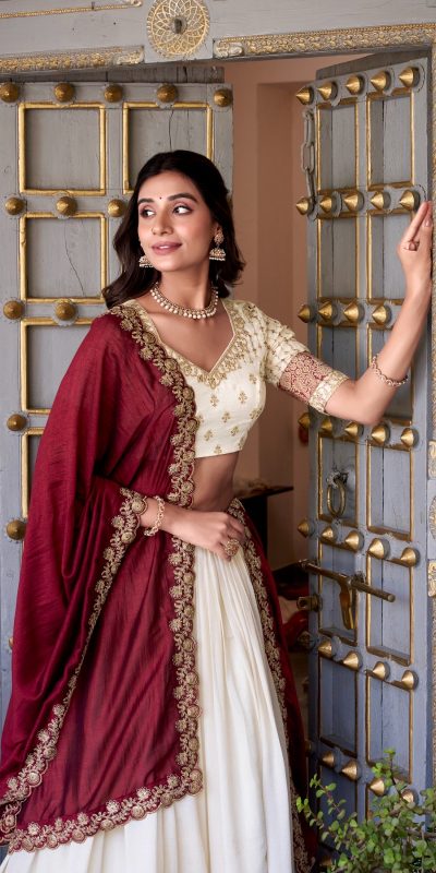 Off White Vichitra Silk Embroidery Zari Work Lehenga Choli