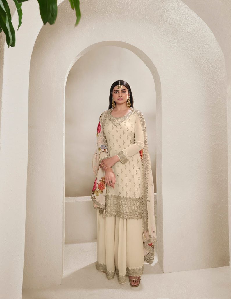 Off White Viscose Chinon Embroidery Work Salwar Suit