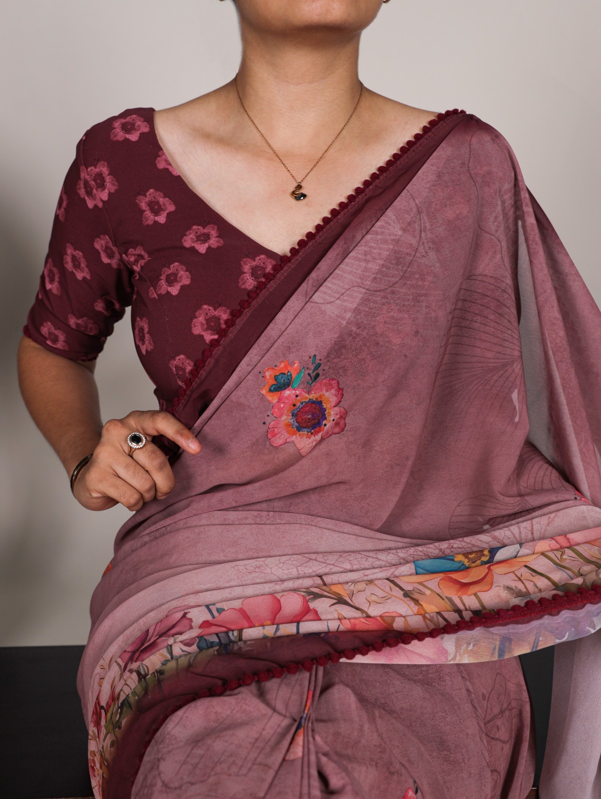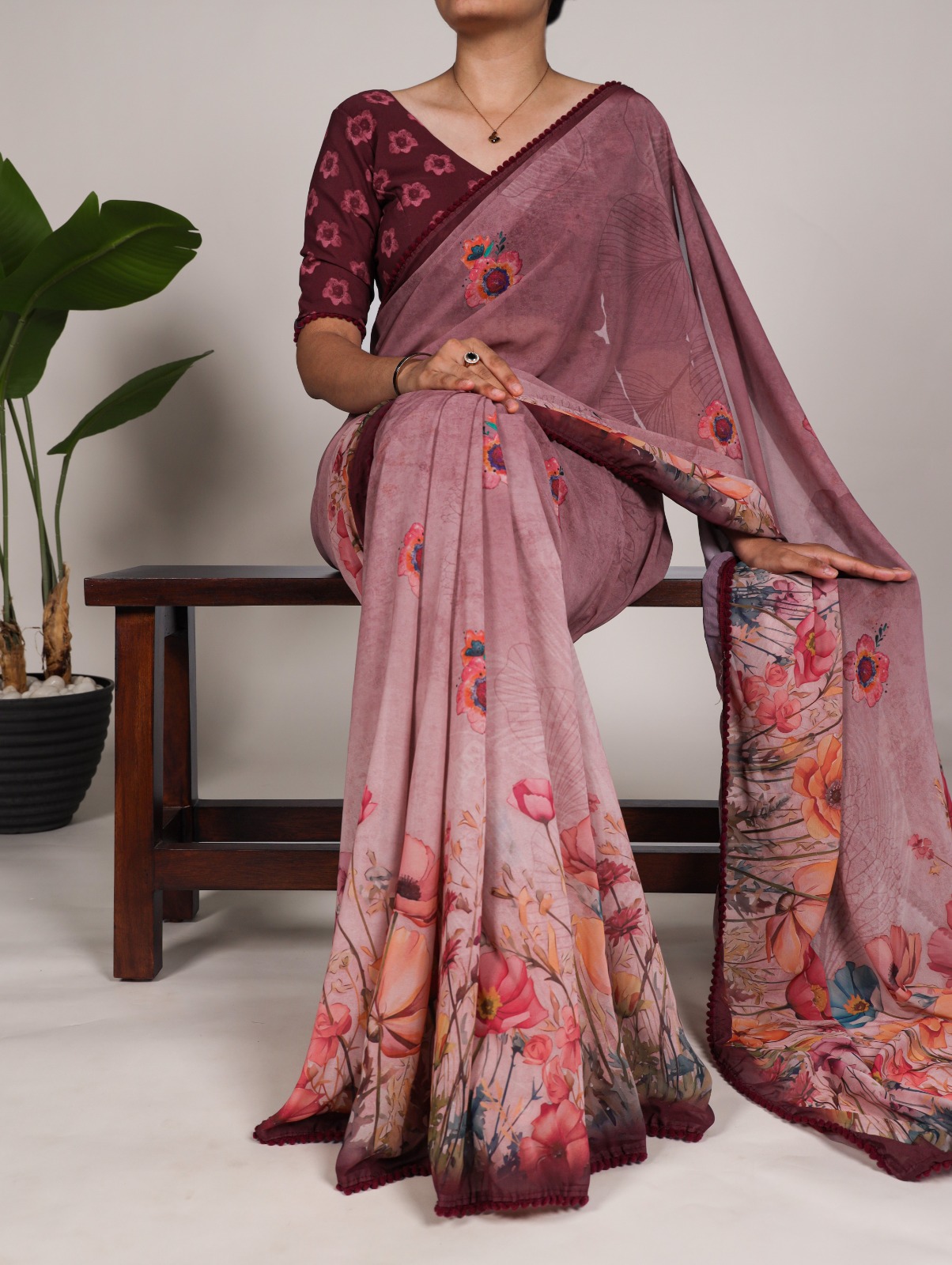 Onion Georgette Floral Saree