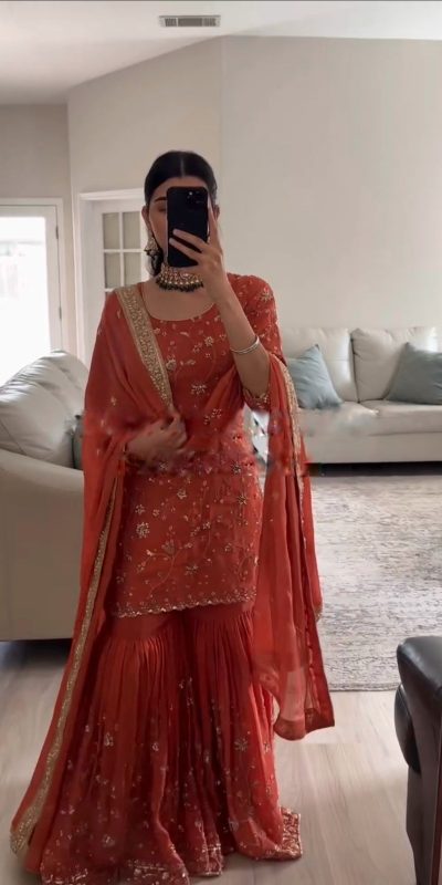 Top Fabric : Heavy Faux Georgette With 5mm Embroidery Sequence Work With Full Sleeve